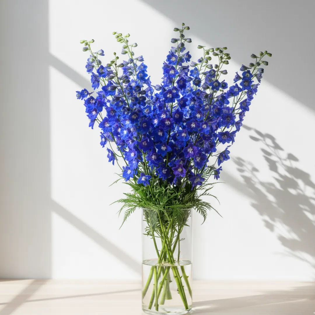 Immerse your space in the calming yet electric hues of the ocean and sky with our exclusive Fresh Majestic Blue Delphinium Flowers. In a floral world dominated by reds and pinks, the Delphinium stands apart as one of the few natural sources of true, vibrant blue. Standing tall like floral towers, these blooms add a sense of grandeur, dignity, and infinite possibility to any room. Delivered at the best price in India, our Blue Delphiniums are the ultimate statement piece for grand interiors in Mumbai, Delhi, Bangalore, and other cities across India.