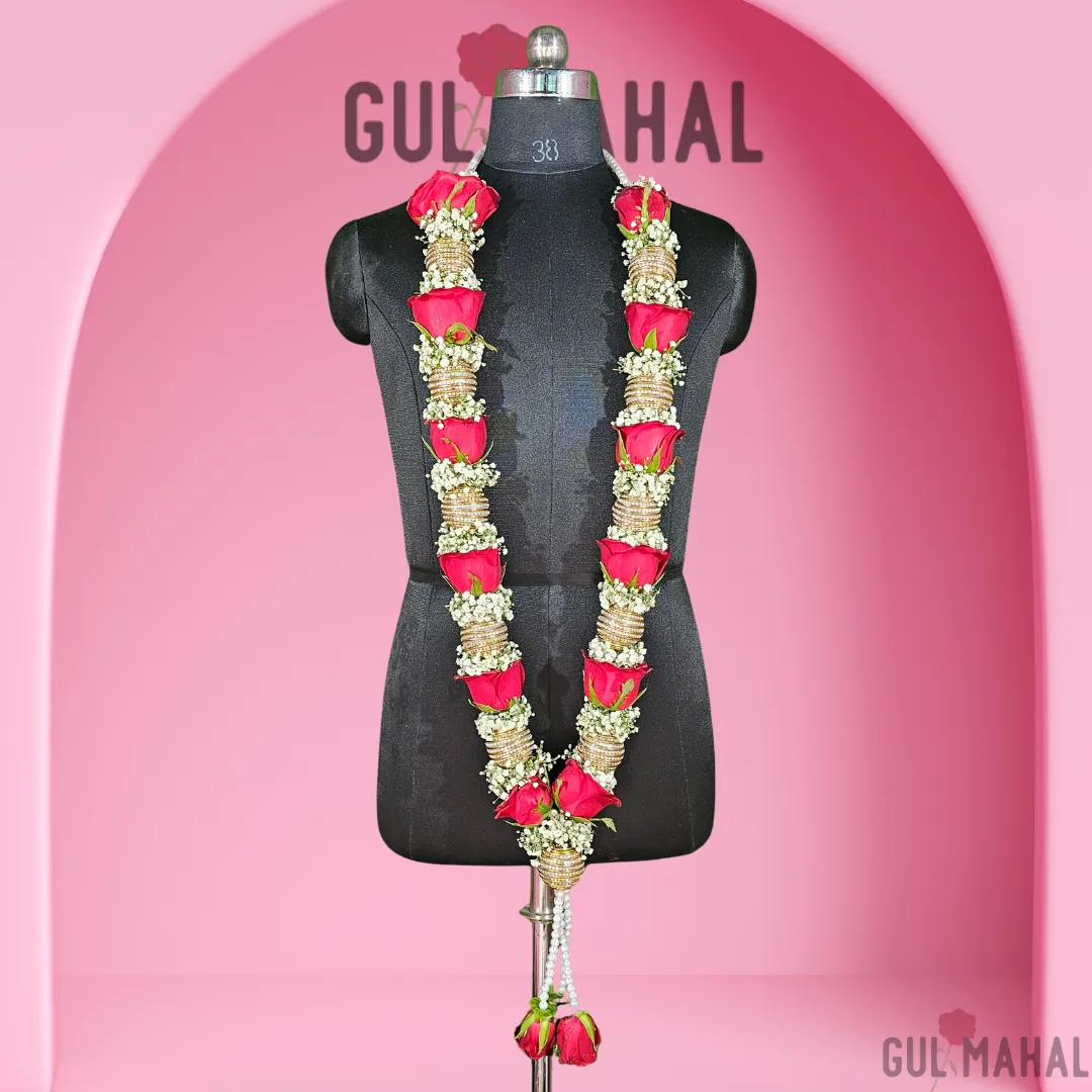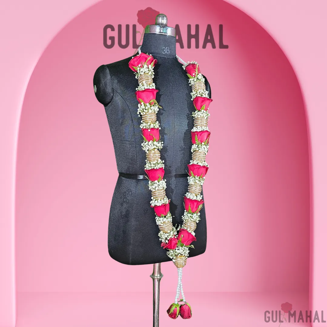 Celebrate the sacred union of marriage with our exquisite Red Rose and Baby’s Breath Wedding Garlands. Symbolizing passion, devotion, and new beginnings, this handcrafted pair of varmala (also known as jaimala) is the perfect floral accessory for the bride and groom’s exchange ceremony.