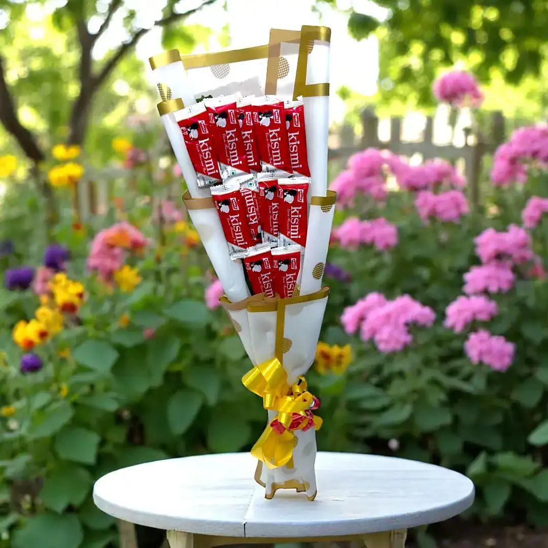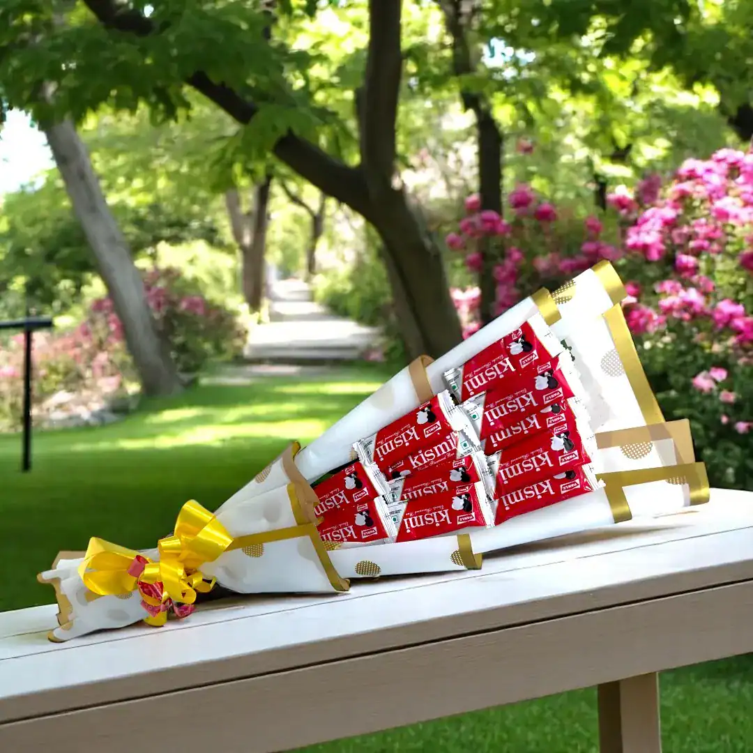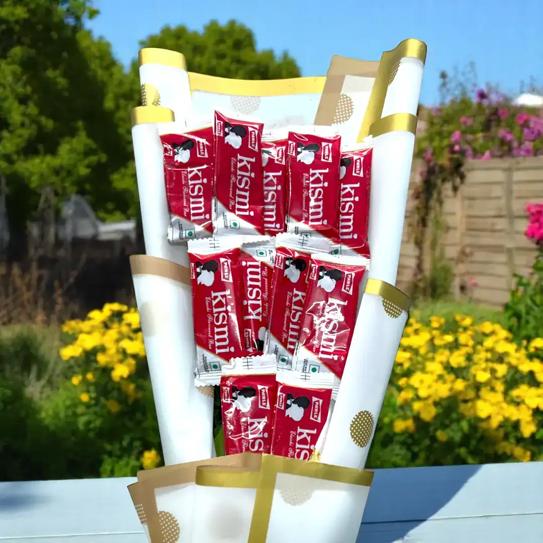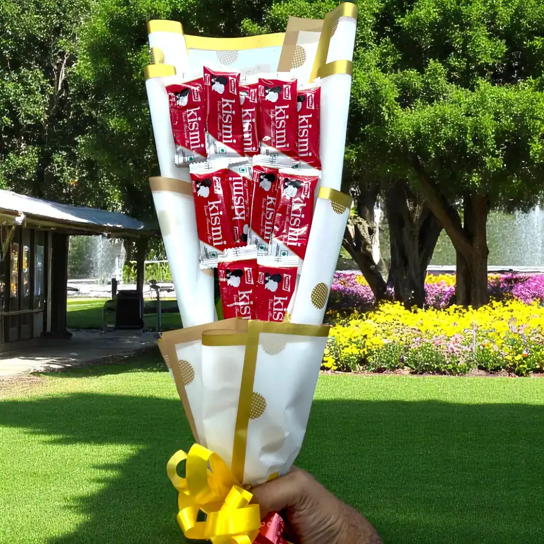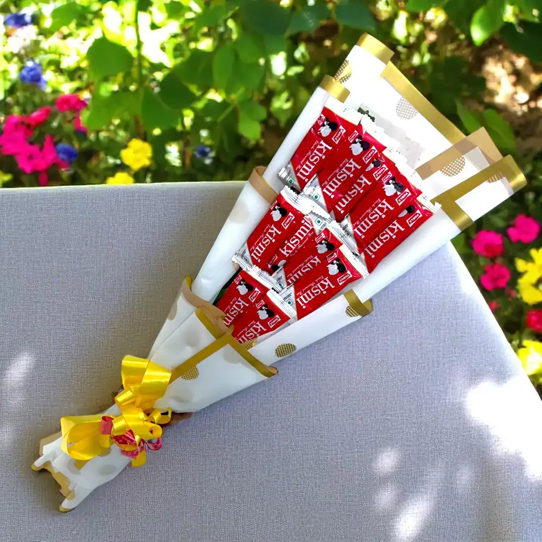 Surprise your girlfriend/boyfriend/husband/wife/partner this Valentine’s week whether it is Chocolate day, Kiss day, or Valentine’s day with especially handcrafted Kismi chocolate bouquet. Made with 10 delicious Parle Kismi Chocolate bars. This bouquet represents your deep emotions to your partner. Send this exciting Kiss me chocolate bouquet to your loved ones through Gulmahal.