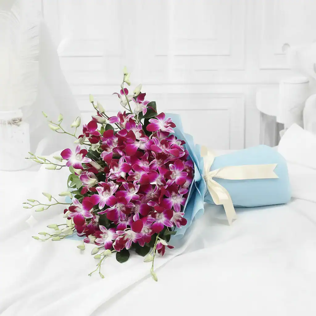Make a truly “humongous” impression with our Grand 10-Stem Purple Orchid Bouquet. This is the showstopper of our collection, designed for those moments when you need to convey overwhelming love, gratitude, or celebration.