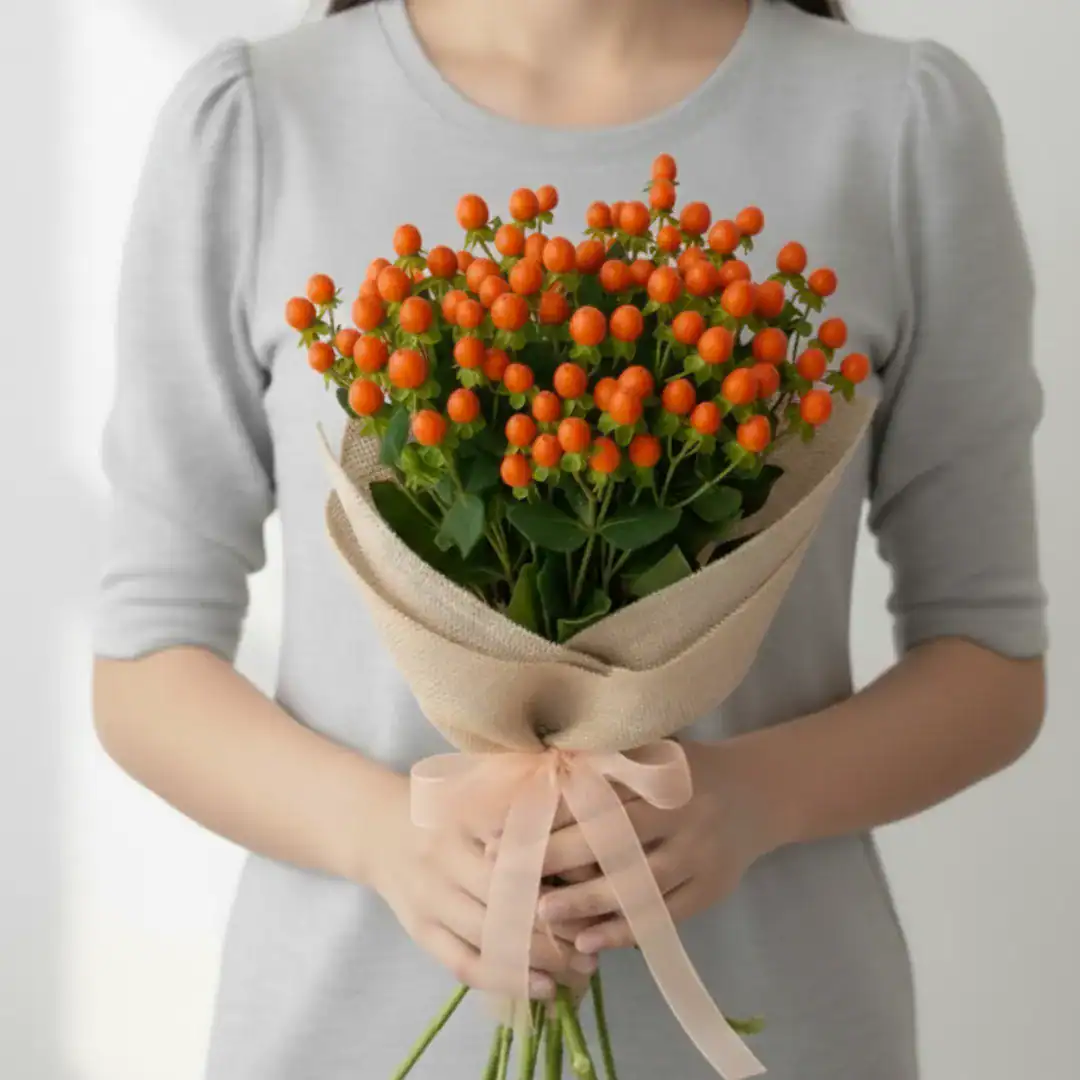 Inject a burst of glowing warmth and playful energy into your floral designs with our exclusive Fresh Radiant Orange Hypericum Berry Stems. These charming clusters feature plump berries in shades of coral, tangerine, and sunset orange. They act as the perfect “happy” accent, adding joyous texture and visual volume to any vase. Delivered vase-ready at the best price in India, our Orange Hypericum is a favorite for creating welcoming spaces in Delhi, Bangalore, Mumbai, and other cities across India.