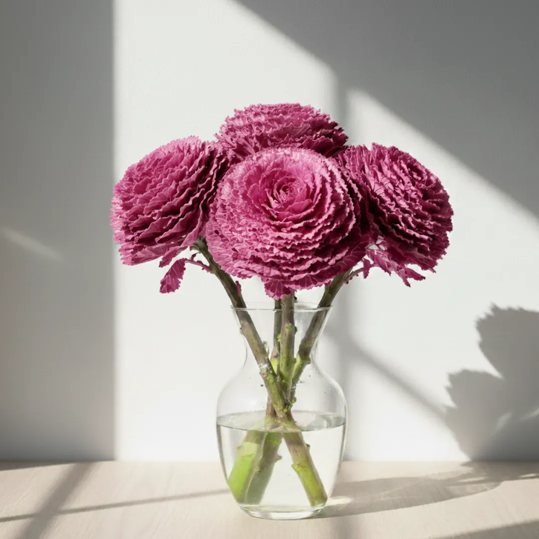 Make a bold, artistic statement with the vibrant color and rugged beauty of our exclusive Fresh Pink Brassica Flowers. Far from ordinary, these stunning stems feature massive, ruffled rosettes that transition from cool grey-green outer leaves to intense centers of magenta, rose, and blush pink. They offer the look of a giant, exotic garden rose but with a sturdy, leafy texture that lasts. Delivered vase-ready at the best price in India, our Pink Brassicas are a top choice for creative, edgy decor in Pune, Delhi, Mumbai, and other cities across India.