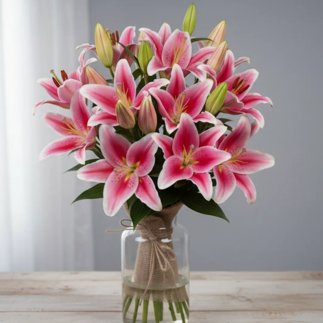 Transform any room into a haven of sophisticated fragrance with our exclusive Pink Oriental Lily Flowers. Renowned for their dramatic size, gracefully recurved petals, and intoxicating sweet scent, these lilies are the ultimate symbol of admiration, prosperity, and feminine beauty. Delivered vase-ready at the best price in India, our Oriental Lilies are highly sought after in Mumbai, Delhi, Bangalore, and all major metro cities.