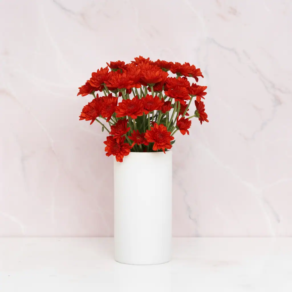 Make a bold impression with our vibrant Red Chrysanthemums, symbolizing love and passion. Perfect for romantic gestures and special celebrations in India.