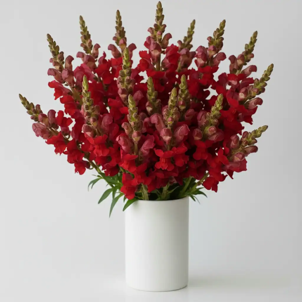Elevate your home decor with our exclusive Fresh Tall Red Snapdragon Flowers. Known for their distinctive, dragon-shaped florets that climb tall, sturdy stems, these blooms add immediate vertical drama and architectural height to any setting. Symbolizing strength and fascination, they are the perfect way to make a bold statement. Delivered vase-ready at the best price in India, our Red Snapdragons are a top choice for adding structure to homes in Delhi, Mumbai, Bangalore, and other cities.