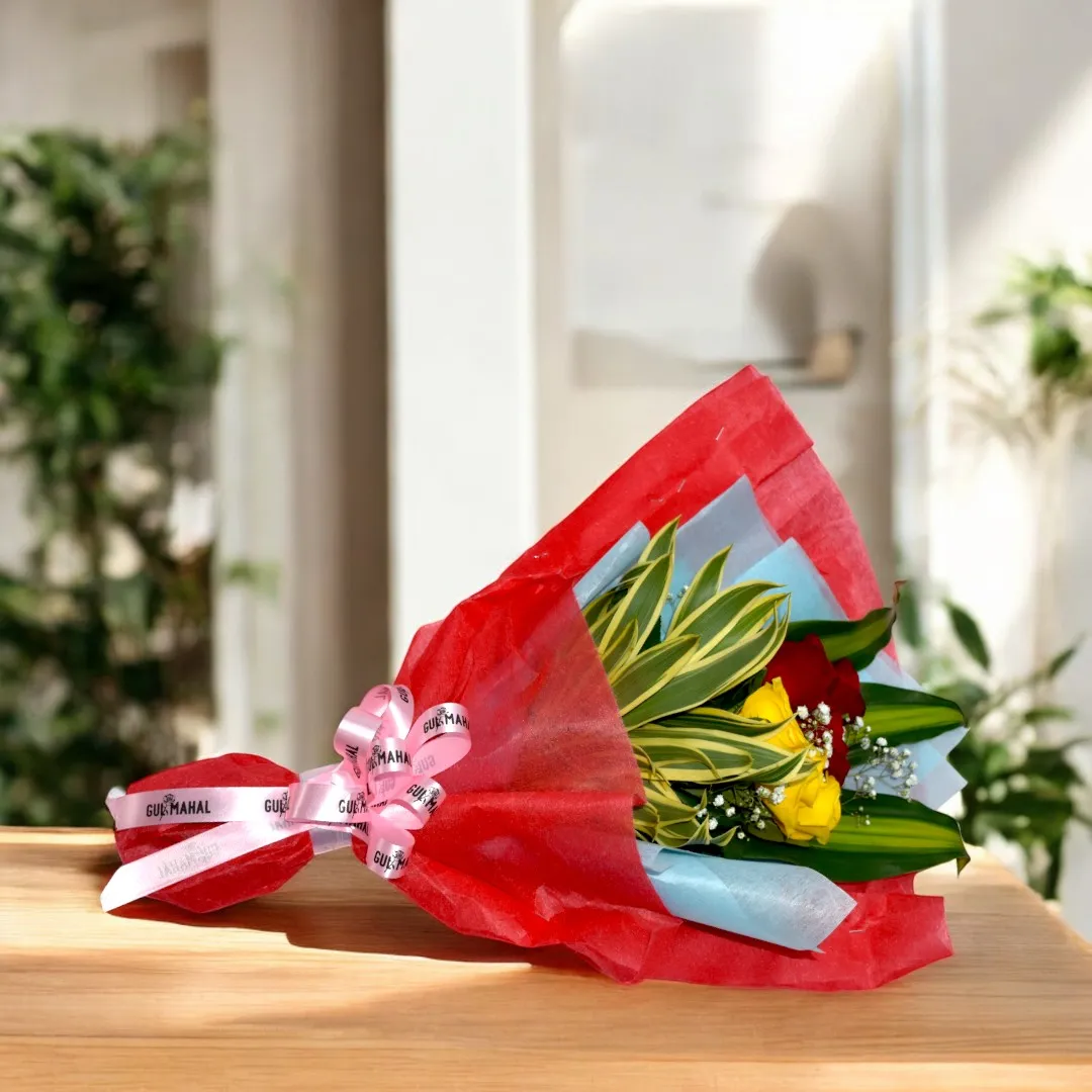 Red & Yellow Roses Hand bouquet