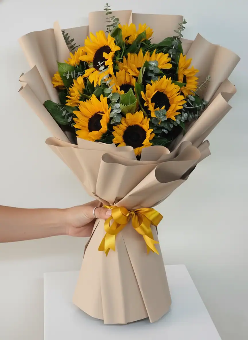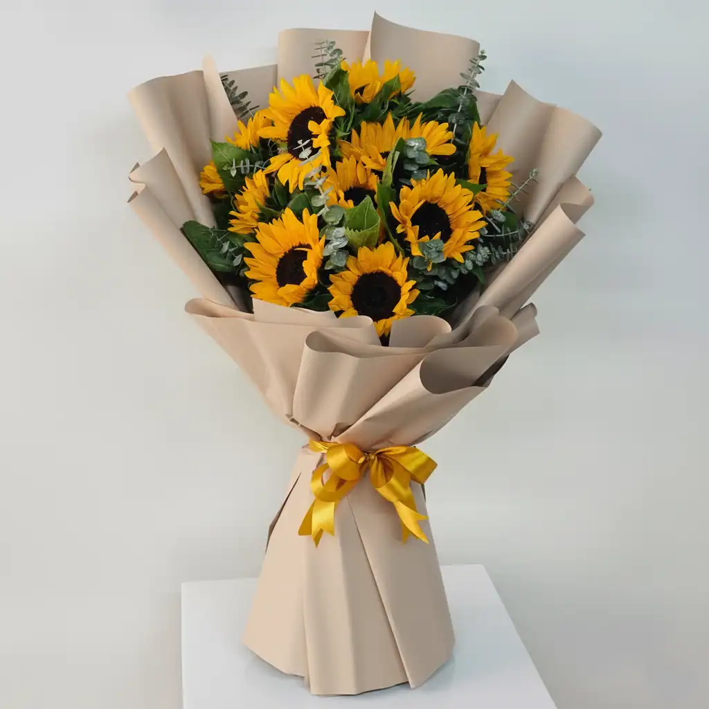 Make a statement of abundance and wholehearted celebration with our Abundant 10-Stem Sunflower Bouquet. This substantial arrangement serves as a magnificent centerpiece, flooding the room with golden light. Whether for a happy birthday sunflower bouquet request or a grand “Congratulations,” this bundle delivers a “perfect 10” experience. Available for fast delivery across Delhi, Bangalore, Kolkata, and other cities.