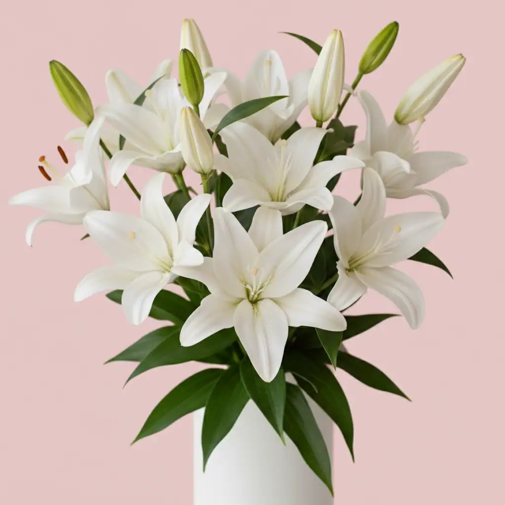 Embrace elegance with our pristine white Asiatic Lilies, symbolizing purity and grace. Perfect for weddings, décor, and thoughtful gifts in India.