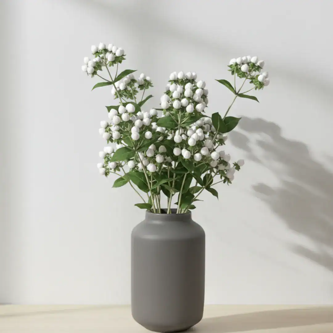 - Pearl-Like Aesthetic: The round, creamy berries look like nature’s pearls, adding a touch of high-end detail that elevates simple flowers into a designer arrangement.