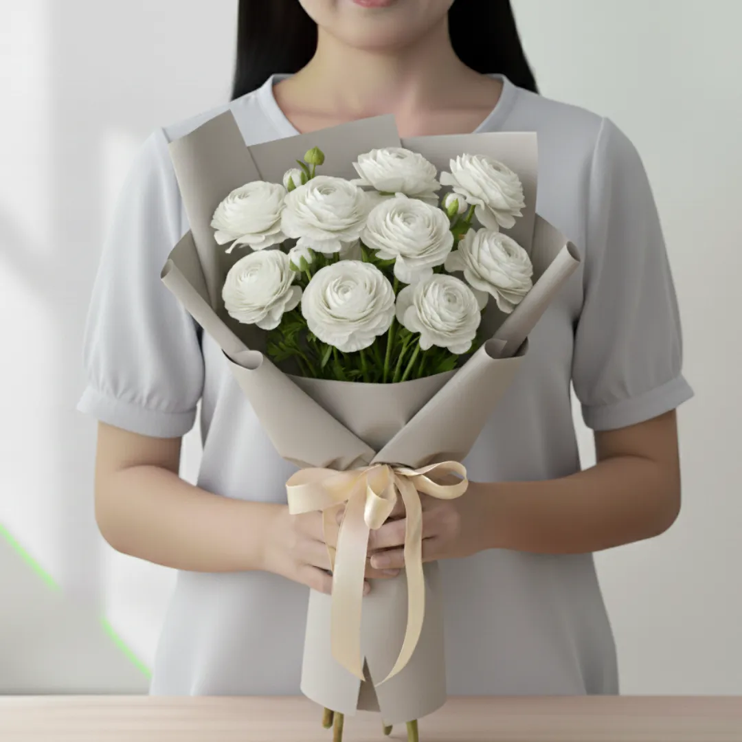 Bring a sense of serenity and high-end minimalism into your home with our exclusive Fresh Pristine White Ranunculus Flowers. Often described as “clouds on a stem,” these breathtaking blooms feature hundreds of snowy white, tissue-thin petals densely packed into a perfect sphere. They are the ultimate symbol of pure attraction and elegant grace. Delivered at the best price in India, our White Ranunculus are the preferred choice for sophisticated decor in Delhi, Mumbai, Pune, and other cities across India.